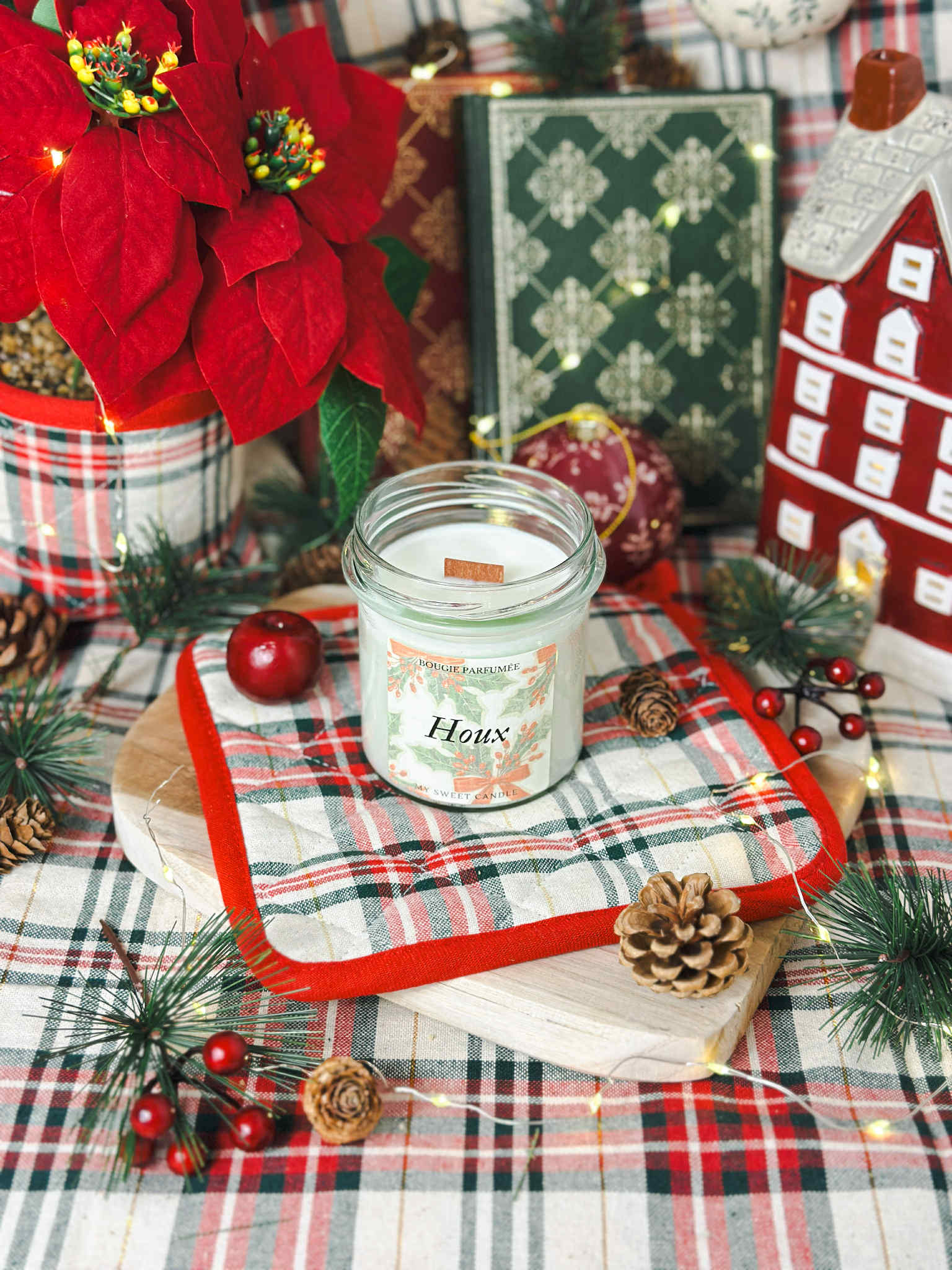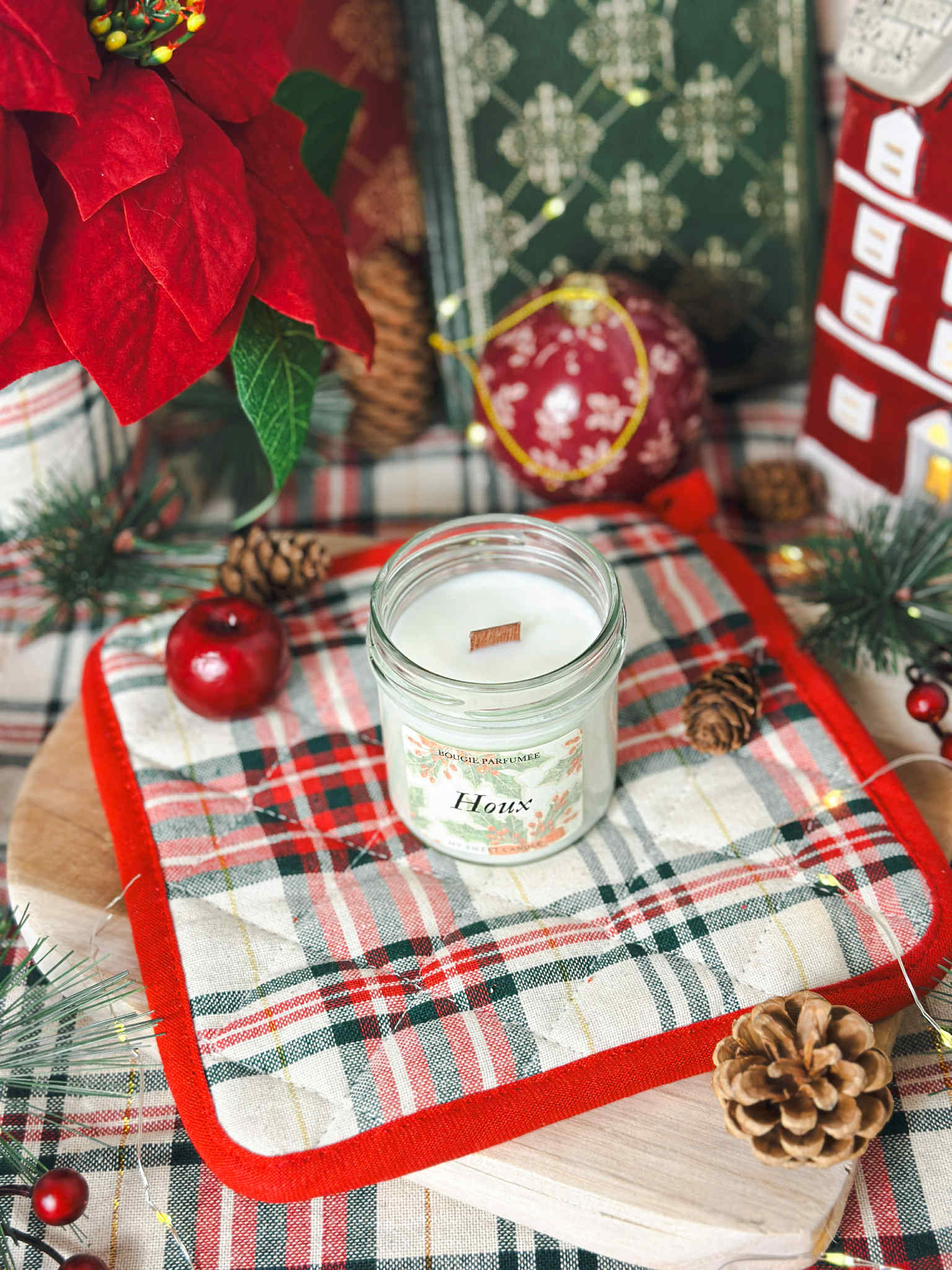 La bougie "Houx", c’est une bougie végétale, fraîche, et subtilement boisée, qui évoque la forêt hivernale et les couronnes accrochées aux portes. 🌿