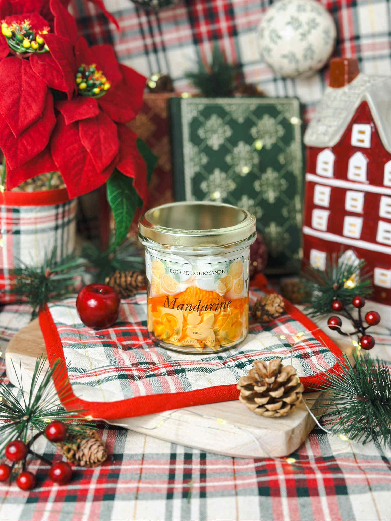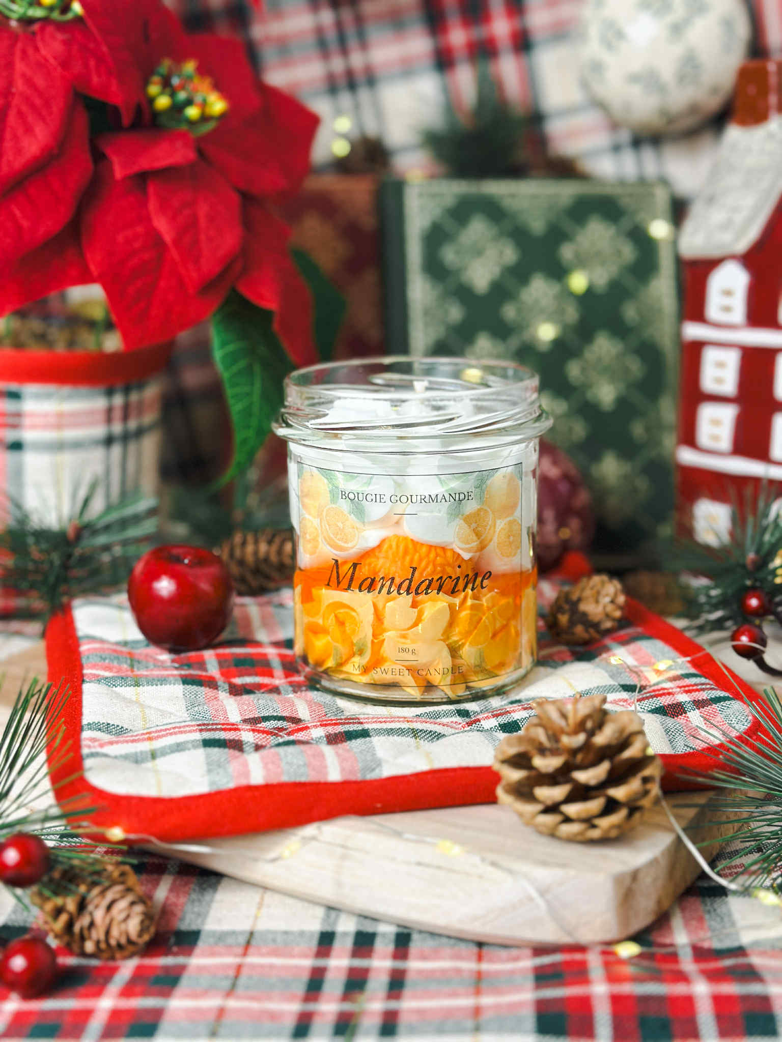 La bougie à la mandarine, c’est le parfum simple et joyeux des fins d’après-midi d’hiver, quand la lumière baisse et que les agrumes deviennent les bonbons naturels de la saison.